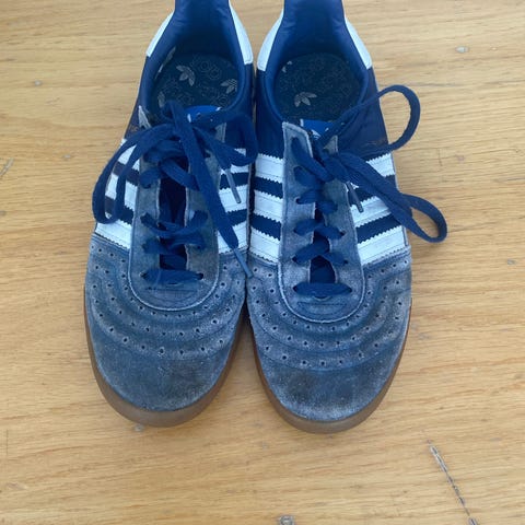 Adidas Busenitz sneakers i størrelse 44 2/3 - 45. Skoene er blå og lavet af tekstil- og ruskindsmaterialer. Designet til mænd med en klassisk silhuet og gummisål.