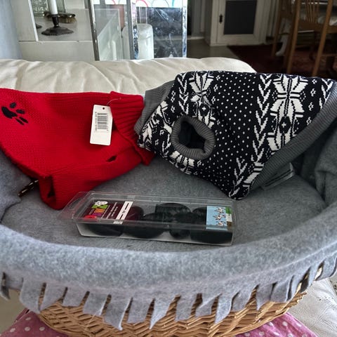 Transport kurv til hvalp. Vinterfrakke og regnslag til lille hvalp.