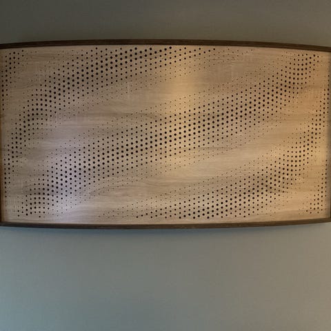 f1. klasses kvalitet. Aluramme i sort. monteret med flot motiv på kvalitetslærrede. Effektiv mod buldrebas, ekko og generelt dårlig akustik. Nypris 3100 kr.