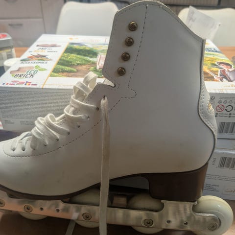 Hvid skøjte, husk at skøjter er små i nummeret, så jeg anbefaler et nr større end i sko