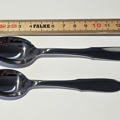 Georg Jensen spiseske stor og mellem. Mitra. Blank. Måler hhv. 18 og 15,5 cm. Fremstår som nye. Prisen er per styk.
