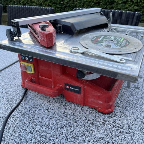 Fliseskærer og vådsav på 500 W. 100% ny og aldrig brugt, selv om emballagen ser lidt "brugt" ud.
