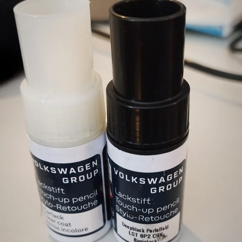 Andet biltilbehør, Lakstifter, Skoda, klar lak + metal sort. Sort har kun været brugt lidt et par gange. Med små pensler. Farvekoden ses på billede.