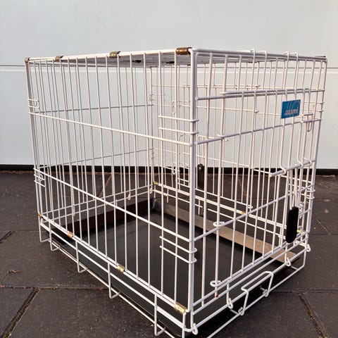 Buret er i god stand med sikker lukning. Dog har min hundehvalp gnavet lidt i nogle af plasticbeslagene, man bruger, når buret er klappet sammen, men det har ikke betydning for funktion eller sikkerhed (her er der metalbeslag). Prisen er herefter.