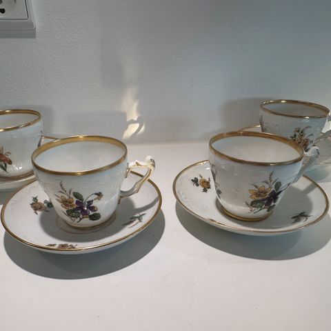 - 6 kopper med tilhørende underkopper (en kop har en hårfin skår - se billederne)