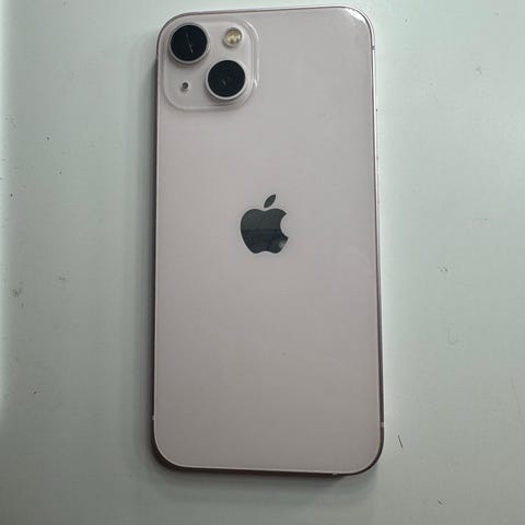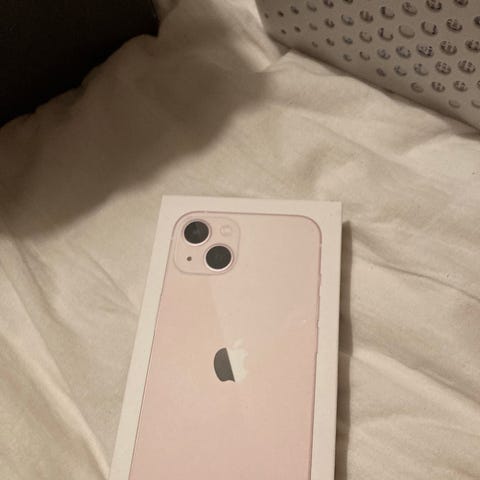 iPhone 13 i pink med 128 GB. Batterikapacitet på 77%. Meget flot stand uden synlige skrammer.