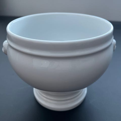 Pillivuyts klassiske, hånddrejede Serie Originale suppeskål med løvehoveder som hanke. 11cm diameter. Kapacitet: 40cl