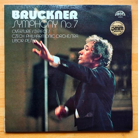 LP, Anton Bruckner, Symphonies, Bokssæt. Normalt med 5 lp’er men pladen med symfoni nummer 9 mangler.