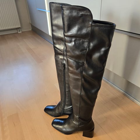 Støvlerne er helt str svarende. Super gode til både smalle og lidt bredere læg.