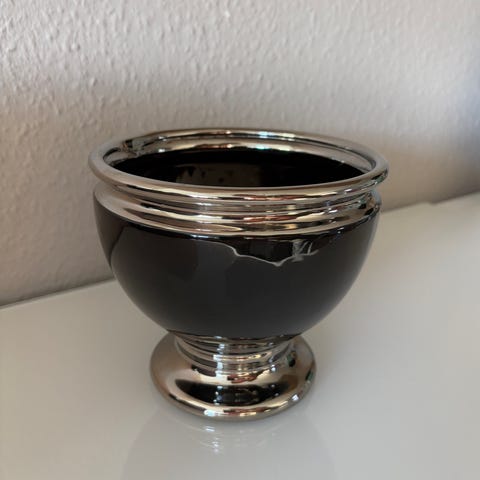 Sort klassisk potteskjuler i porcelæn. Ø13 cm. Står som ny.