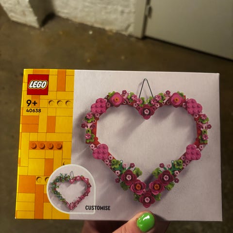 Lego-hjerte i lyserøde farver sælges i uåbnet æske