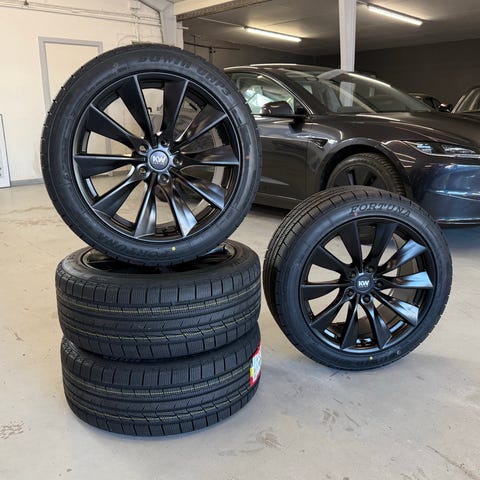 Pæne og velholdte fælge der har siddet på en Tesla Model 3 SR fra 2020.