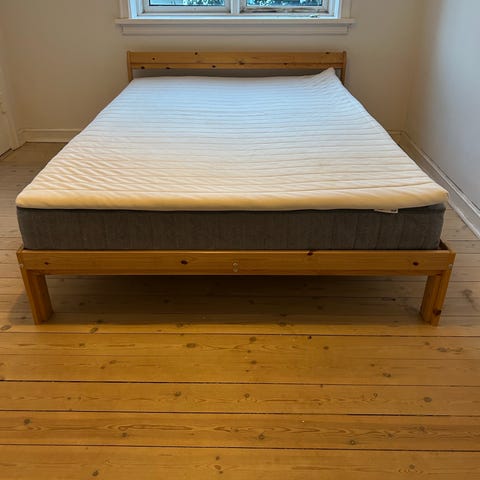 IKEA tarva seng sælges. Madrassen følger med, hvis ønsket. Den har nogle pletter som vist på billedet. Rammen er i god stand og kan skilles ad, så den er nem at flytte.