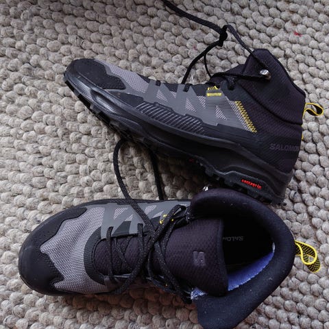 Salomon støvler i størrelse 43 med sort farve. Designet til udendørs brug med slidstærk sål og robust materiale.