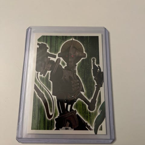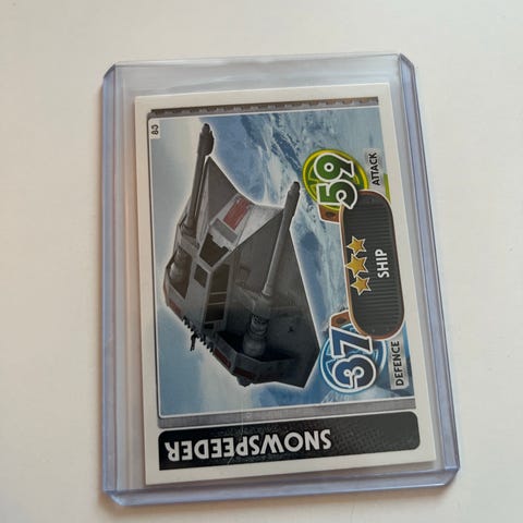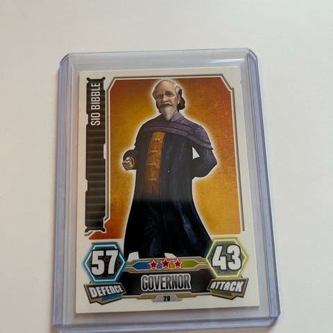 Topps Star Wars Republic trading card featuring a character in action pose. The card displays defense and attack stats and is part of the Force Attax series.