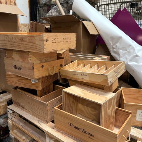 Stort lot af rå trækasser og møbler....oplagt til blomsterbutik eller lign.