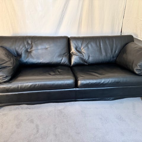 3 personers sofa. Sofaen har læderbetræk, men det er slidt, så den trænger til nyt betræk.