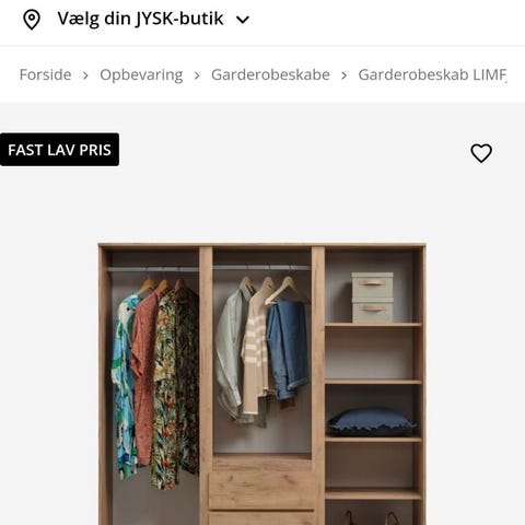 Garderobeskab LIMFJORDEN 180x200 kombi i vild natur eg sælges.