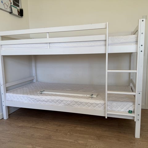 IKEA køjeseng med stige grå metal inkl. 2 madrasser