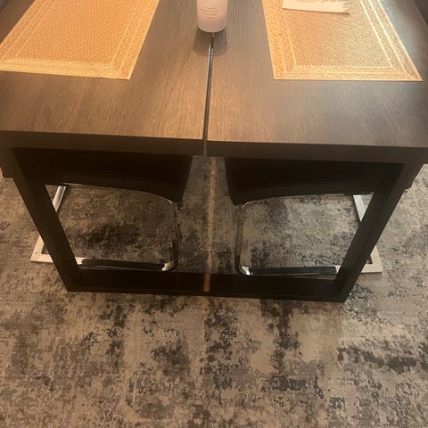 Flot og enkelt Tranebo-bord fra IKEA, produceret i Italien, udført med et solidt metalstel og en slidstærk laminatbordplade. Bordets mørke farvetone og rene linjer giver et markant, moderne udtryk med tydelig LA vibe, der passer perfekt ind i en nutidig indretning. En udgået model der ikke længere kan købes i Ikea dk.