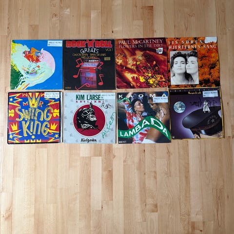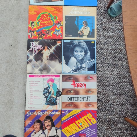 Har du fået en pladespiller så køb alle 10 for 100 kr. Plus 40 kr i porto. Ingen Fiks og Færdig.En samling af forskellige vinylplader med musik fra forskellige kunstnere og genrer. Indeholder albumcovers med billeder af kunstnere og grupper. Velegnet til musiklytning og samlere.