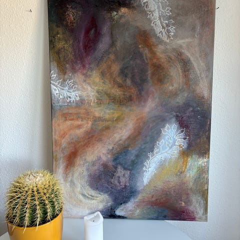 Abstrakt vægdekoration. Måler 200 cm x 122 cm.