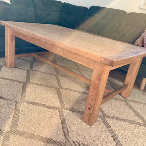 Massivt egetræbord i god stand, kun lidt overflade mærke efter en lampe men kan nemt pusses væk.