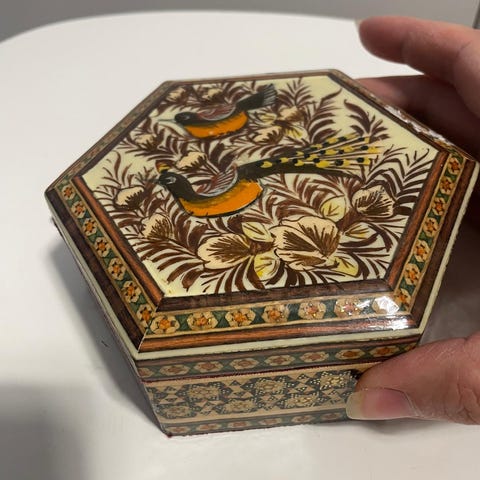 Decorative Lidded Box with Handpainted Birds.