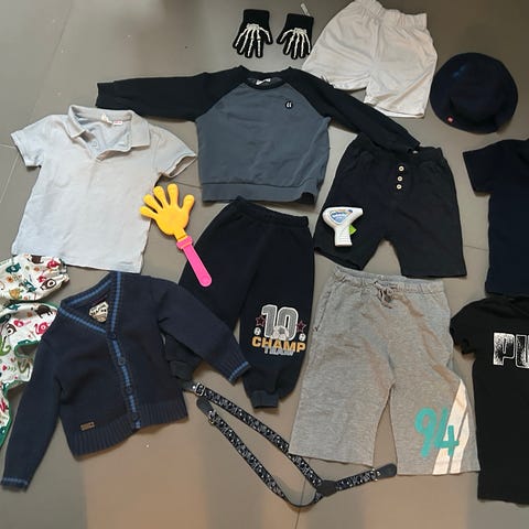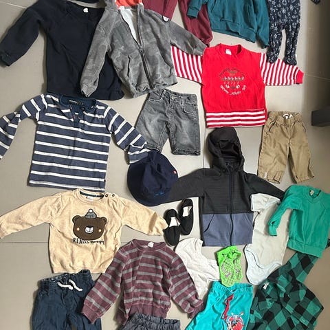 H&M multifarvet børnetøj i størrelse 56 -74 til både piger og drenge. Sættet inkluderer forskellige beklædningsgenstande med forskellige farver og mønstre, egnet til små børn.