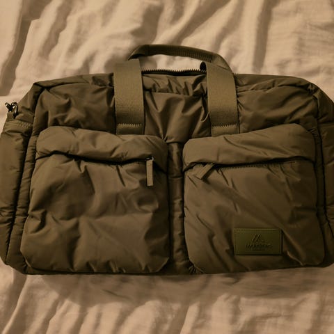 Rigtig flot stand og kun lidt brugt. Olivenfarvet. Materiale: recyclet plastik. Ca. mål: 38 *28 * 12 cm. Justerbar stopper. I det store rum findes to "ekstra" rum - se foto. Ingen kæledyr og røgfrit hjem. Også nem afhentning. Normalpris: 899 kr.