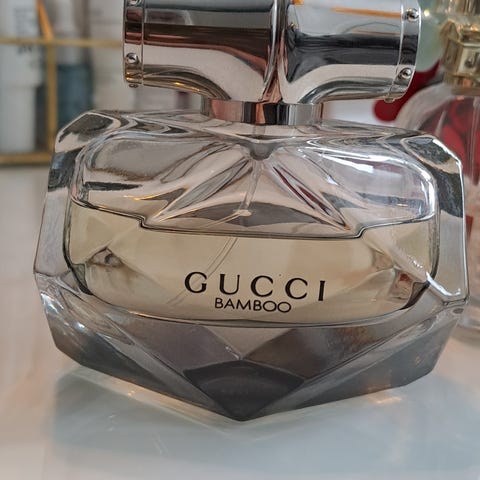 Gucci Bamboo Eau de Toilette med en volumen på 75 ml. Produktet kommer i en klar flaske med et unikt lågdesign. Parfumen er produceret i Storbritannien og indeholder en sammensætning af forskellige ingredienser, herunder alkohol og parfumestoffer.