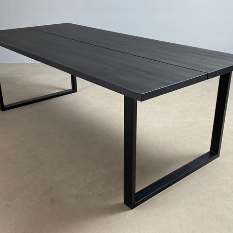 Bordet fungerer alsidigt som spisebord, skrivebord eller mødebord og egner sig både til private hjem, kontorer, atelierer og kreative miljøer. Det industrielle stel kombineret med den mørke overflade skaber et elegant, arkitektonisk look, der er let at style med både moderne og klassiske stole.