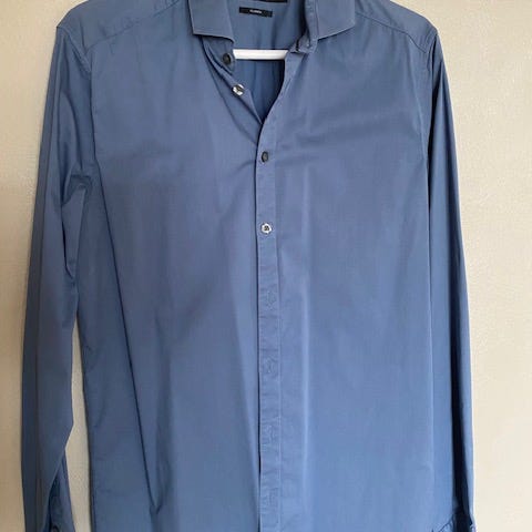 Tiger of Sweden stribet skjorte i lysblå og hvid, str. L slim-fit stretch