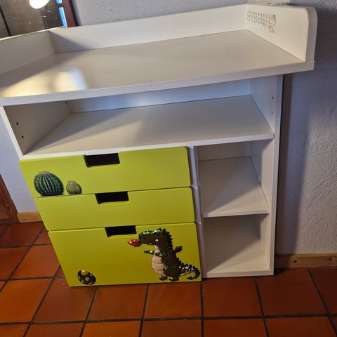 Super fint puslebord med skuffer i hvid fra IKEA. Årsagen til at billederne er fra Ikeas hjemmeside er fordi puslebordet pt ikke er samlet.
