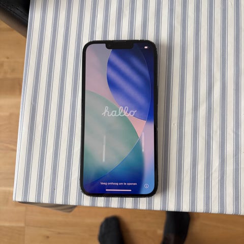 Apple iPhone 13 smartphone med 128 GB lagerplads. Enheden har en sort farve og leveres med iPhone emballage, opladerkabel og beskyttelsescover. Samt panzerglas.