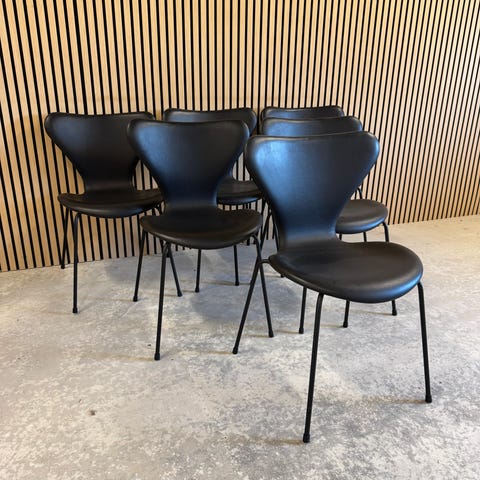 8 stk. syver spisebordsstole i sort læder sælges samlet eller hver for sig.