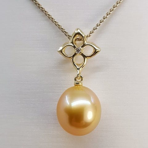 Flot og Elegant 18 Karat Guld Vedhæng m. Dark Gray Tahiti Perle Prydet m. Små Diamanter i Accent.