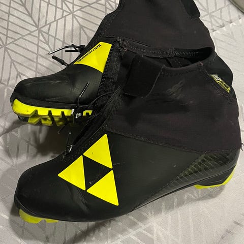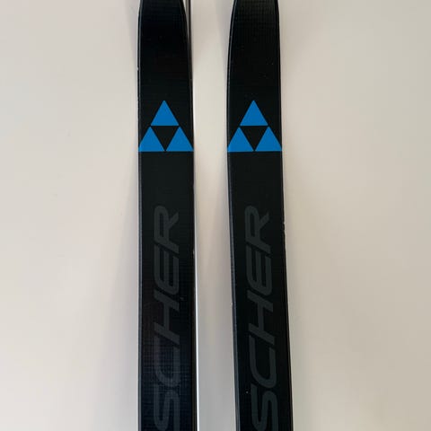 Fischer Ski 207cm og 192cm lange, Salomon støvler str44 og 40, og Swix langrendsstave i Carbon 165 og 140cm lange
