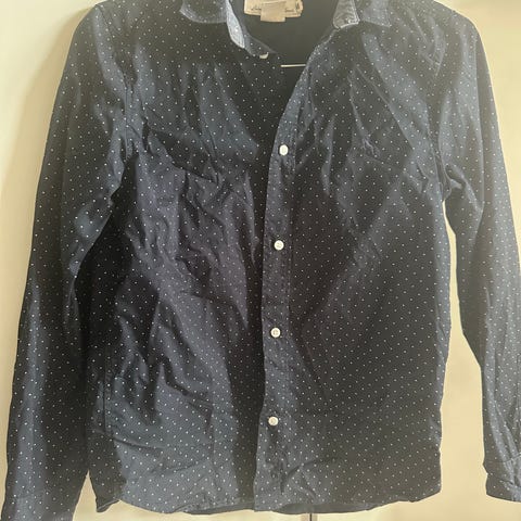 H&M skjorte til dreng i størrelse 140. Skjorten er grå og lavet af bomuld. Den har lange ærmer og knaplukning foran. Brugt men stadig fin