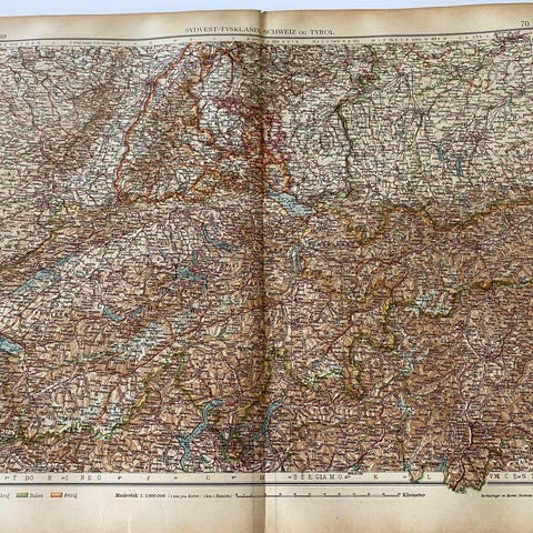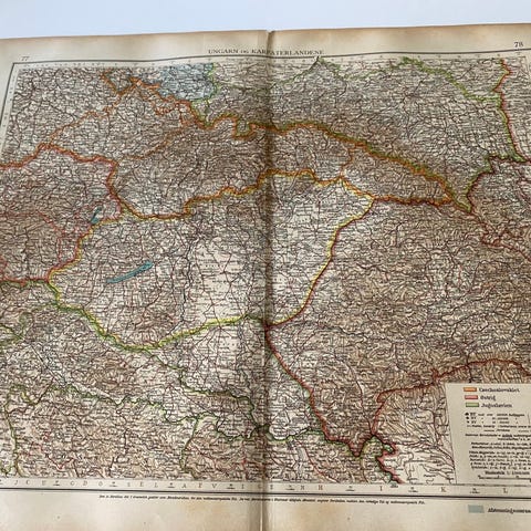 Et fedt lille væghængt kort over Tyskland, Polen, Tjekkoslovakiet, Ungarn og Schweiz