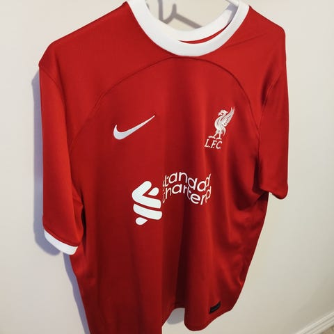 Liverpool Hjemmebanetrøje 2022/23 Vapor i størrelse XL med tryk på ryggen i form af #1 Member hvoraf prisen.