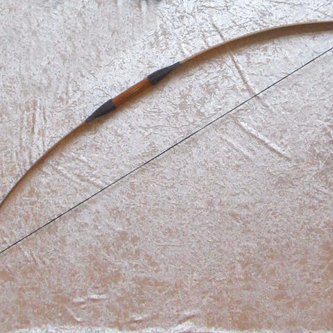 Bemærk: Snoerne i top og bund er løse. Den ene har været det i årevis uden problemer og uden at påvirke buens styrke. Det kan nemt limes, hvis man ønsker det.