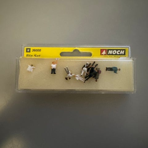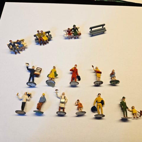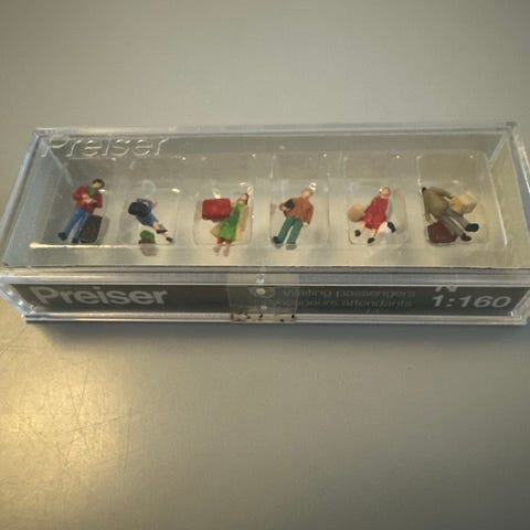 Noch 36220 Rejsende modeltogfigurer i miniatureformat. Indeholder flere figurer af rejsende i forskellige positurer og farver. Egnet til modeljernbane og dioramaer.