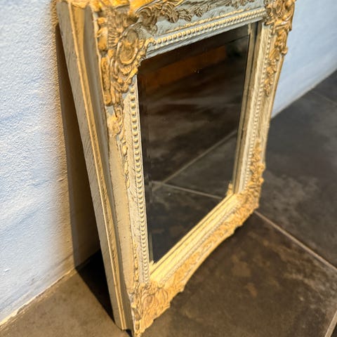 Vægspejl, b: 50 h: 115, fint gammelt barok spejl,er meget solidt og tungt
