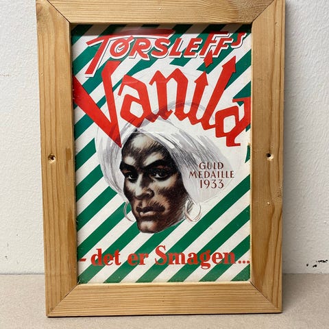 Indrammet retro reklame for Tørsleff’s Vanila. Rammemål 18,5 x 24,5 cm. Sender gerne men ikke via “fiks færdig”. Køber betaler porto.