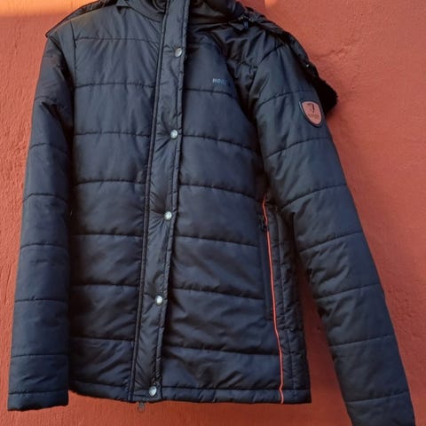Horka Victory Ridning Jakke til damer i størrelse 36. Jakken er sort og lavet af 91% nylon og 9% elastan. Den har lynlåslommer og knaplukning.