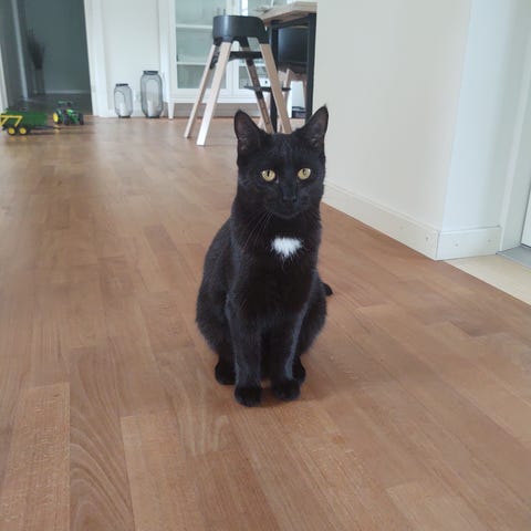 Hun er en kat, der skal se en an og have masser af tid, tålmodighed og hjerterum. Tilgengæld får man en virkelig skøn kat, der elsker at blive kysset på, aet og en kat, der ligger og putter med en og søger nærvær og kærtegn, dog stadig på hendes primisser.