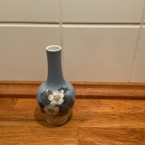 Royal Copenhagen Florena Vase hvid og blå keramik