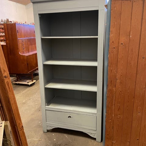 vitrineskab fyrretræ fremstår med brugspor, et godt maler projekt.