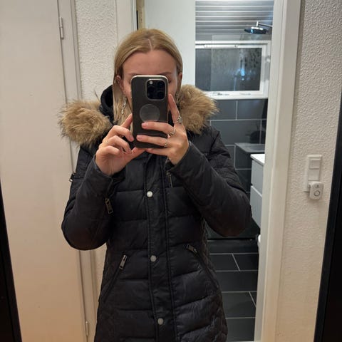 Kommer fra røg, duft og dyrefrit hjem. Jakken er i rigtig pæn stand og da jeg ikke bruger makeup er der heller ingen skidt at se på kraven.